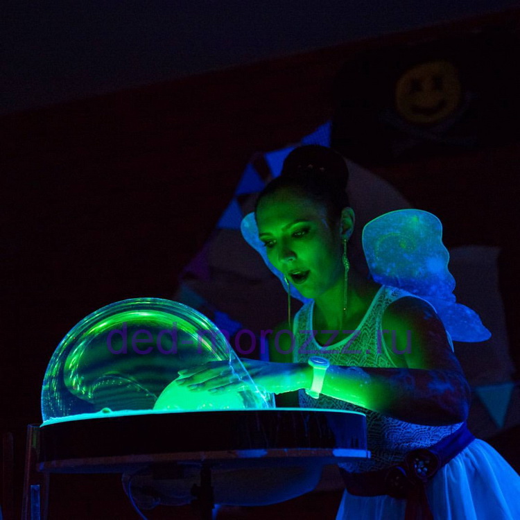 Новогодние Неоновое Шоу Мыльных Пузырей для детей представлено в двух возможных вариантах исполнения: